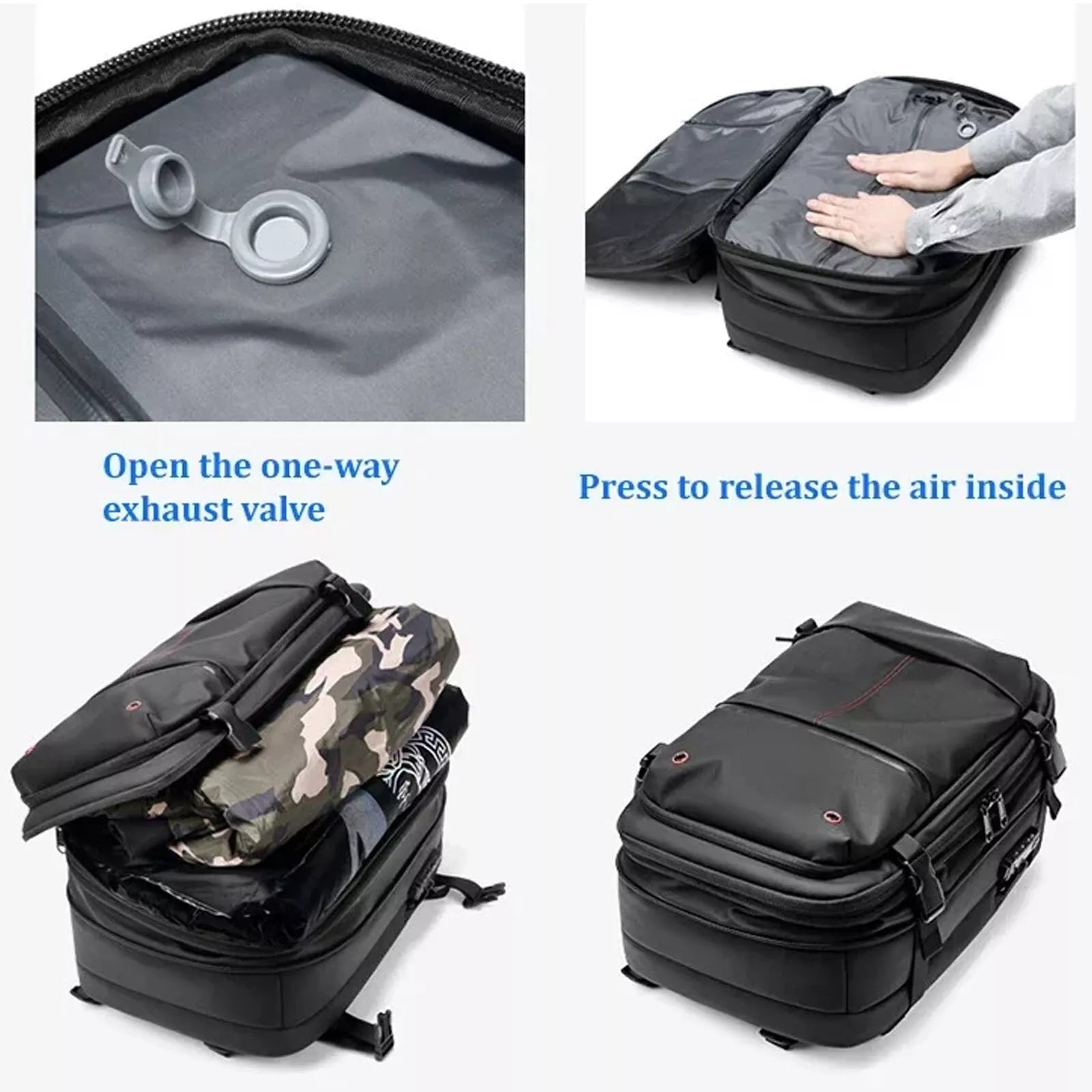In seconds, your soft items shrink by 30-50% in volume, giving you up to half your bag for extra outfits, gear, or souvenirs. More space. Less bulk. Zero stress